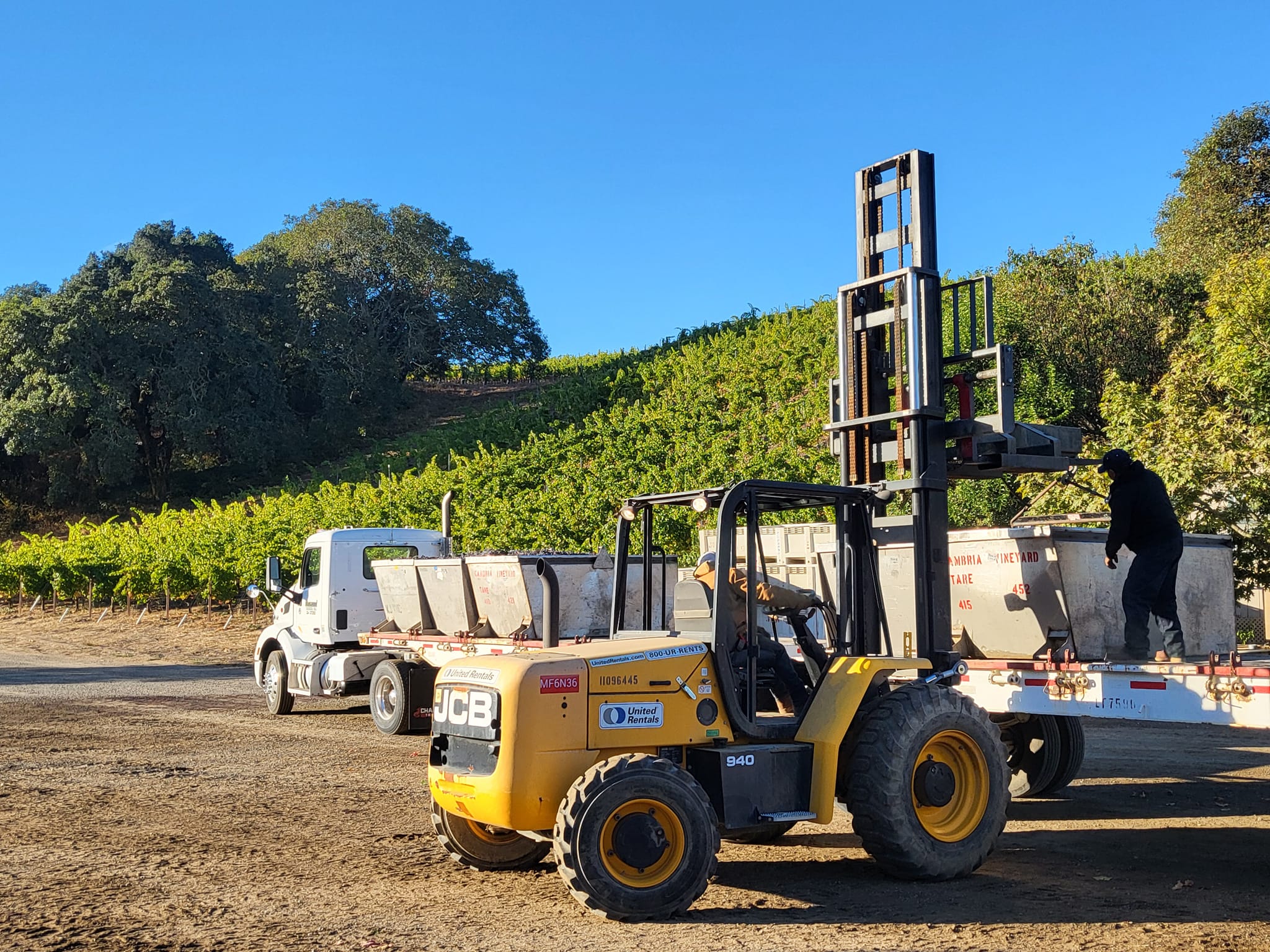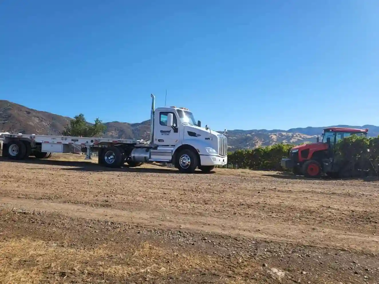 We offer a full range of hauling and transport services, including dump trucks for dirt, rock, sand, asphalt, and demolition debris, with 10-wheels, transfers, super tags, end dumps, and a high-side end dump. We also provide roll-off trucks with debris boxes for trash, vineyard clearing, green waste, and demo debris, plus equipment trailers for tractors and heavy machinery. Our fleet includes flatbeds, double flatbeds, and seasonal grape hauling.