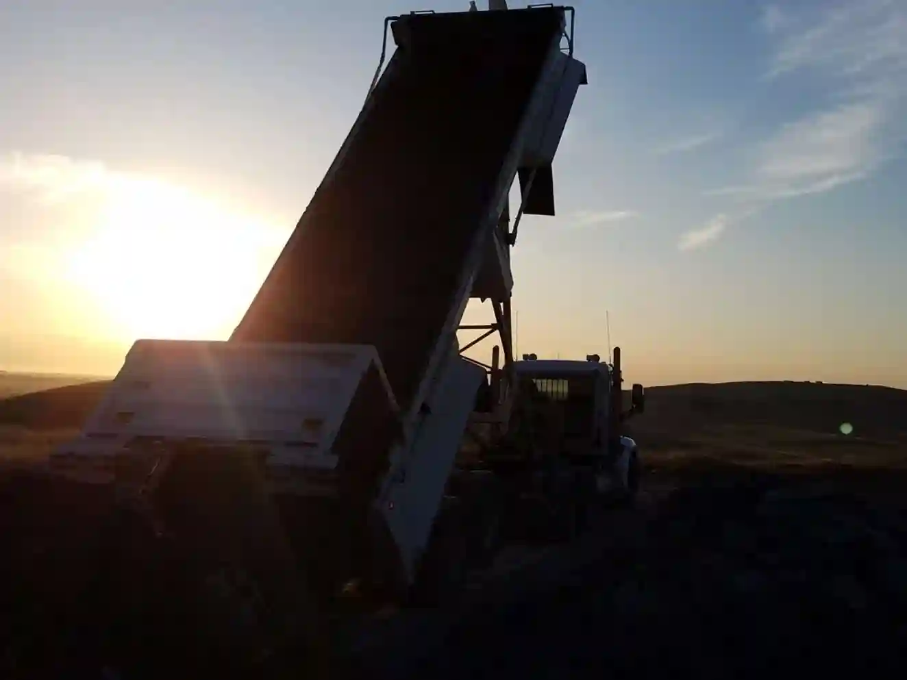 Versatile end dump trucks for quick unloading of construction materials